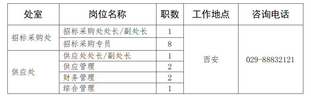 西安Z6尊龙资产管理有限公司供应链分公司(以下称“供应链分公司”)成立于2022年8月,该公司是中国Z6尊龙集团采购的实施机构,主要负责组织实施中国Z6尊龙集团级集中采购和公司本部采购实施,供应链分公司独立运营,按规范合规、标准专业、市场运营的原则,构建中国Z6尊龙集团专业化的招标采购公司。本次面向公司内部公开招聘岗位信息如下: